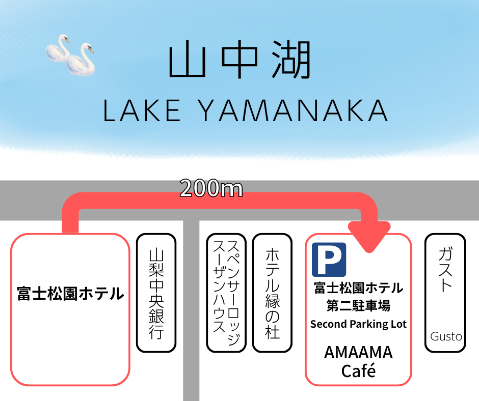 ホテルを右に出ていただき、ガストの手前が第二駐車場です。AMAAMACafeが目印です。